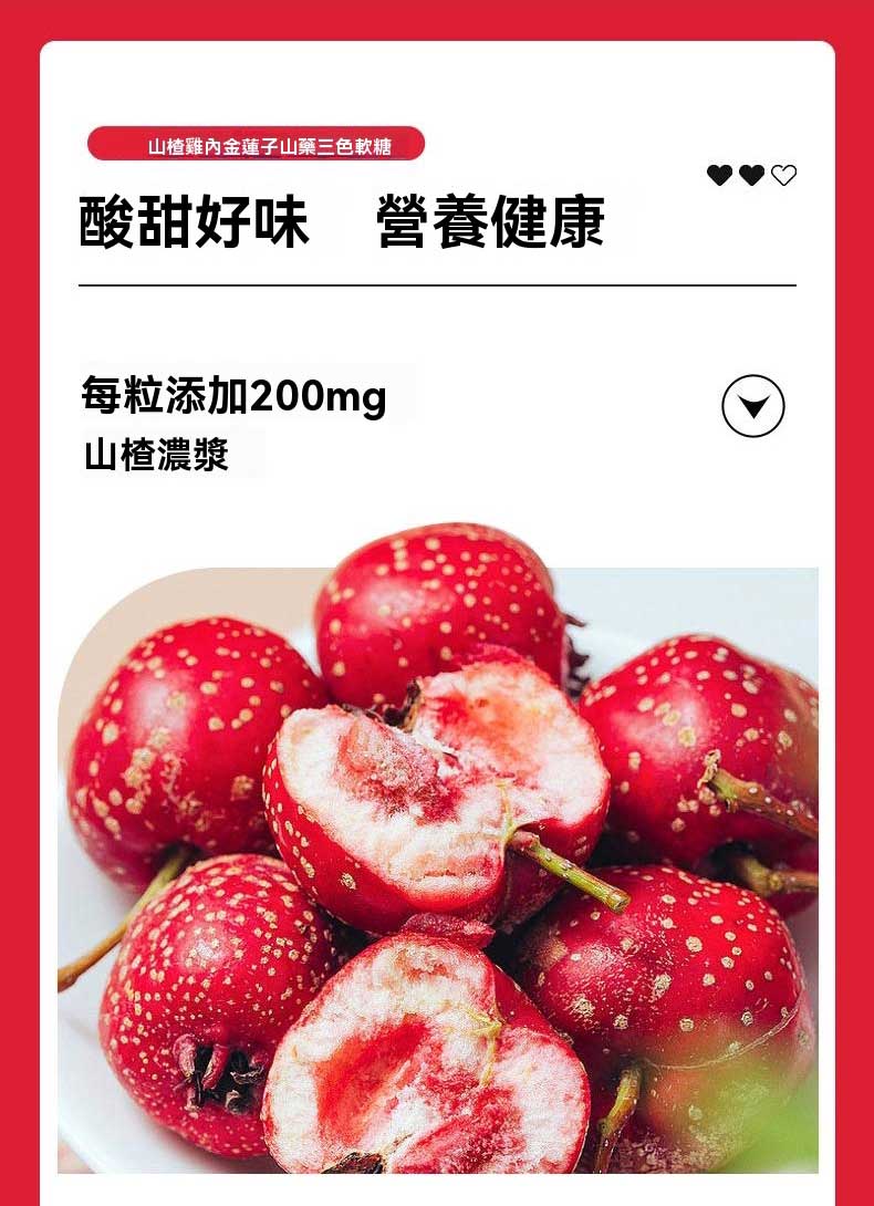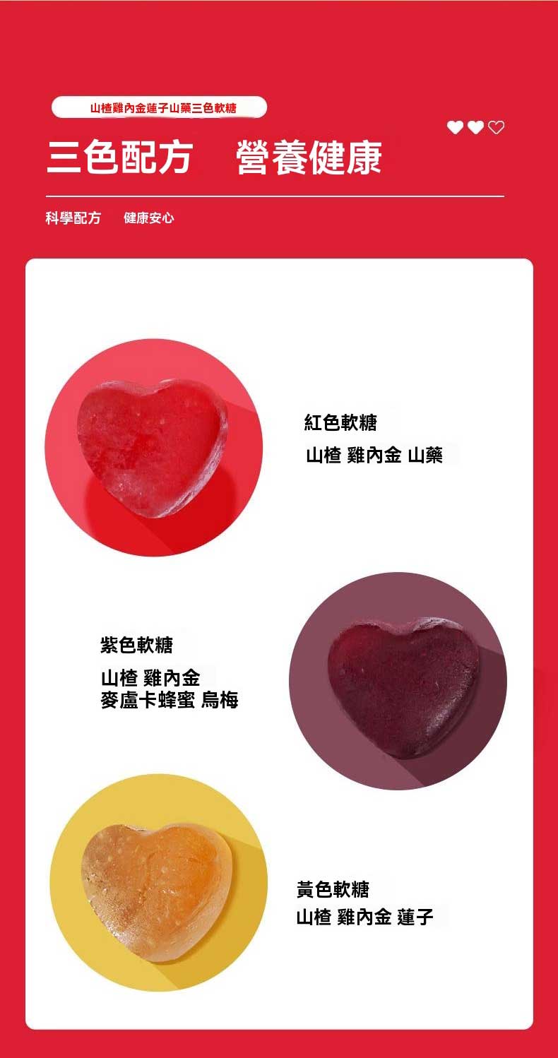 半小時前【山楂雞內金軟糖】開胃、健脾、消食,無蔗糖,純天然藥食同源,增進孩子胃口,增強消化,促進營養吸收 - 【改善消化積食】買一送二 3入組 NT$998