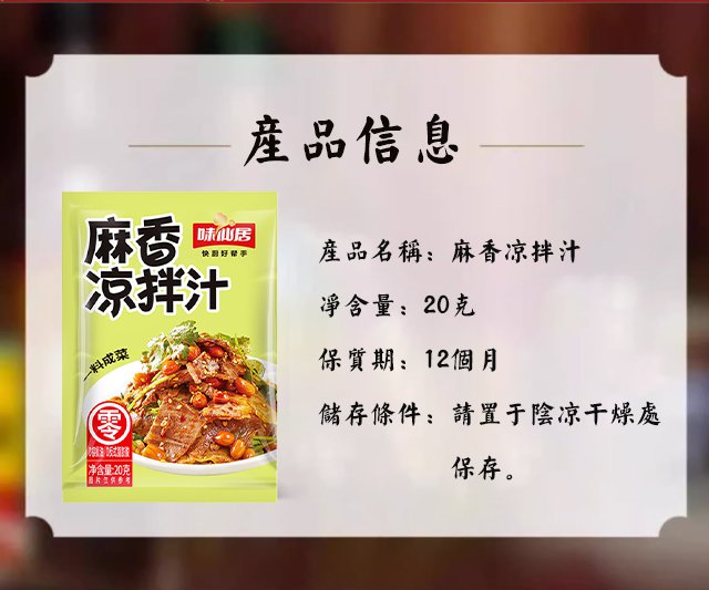 20分鐘前萬物皆可拌味仙居麻香涼拌汁 - 六十入组NT$1290