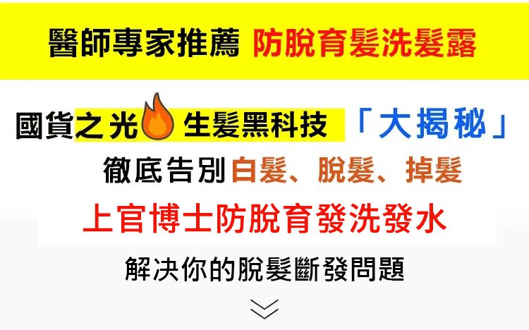 7分鐘前上官博士防脫育發洗發水 火爆熱銷中!台灣本土出貨!24小時在線客服,售後無憂!現在下單享受在線支付立減活動! - 【固發增發】2入組NT$899【低至450/入】