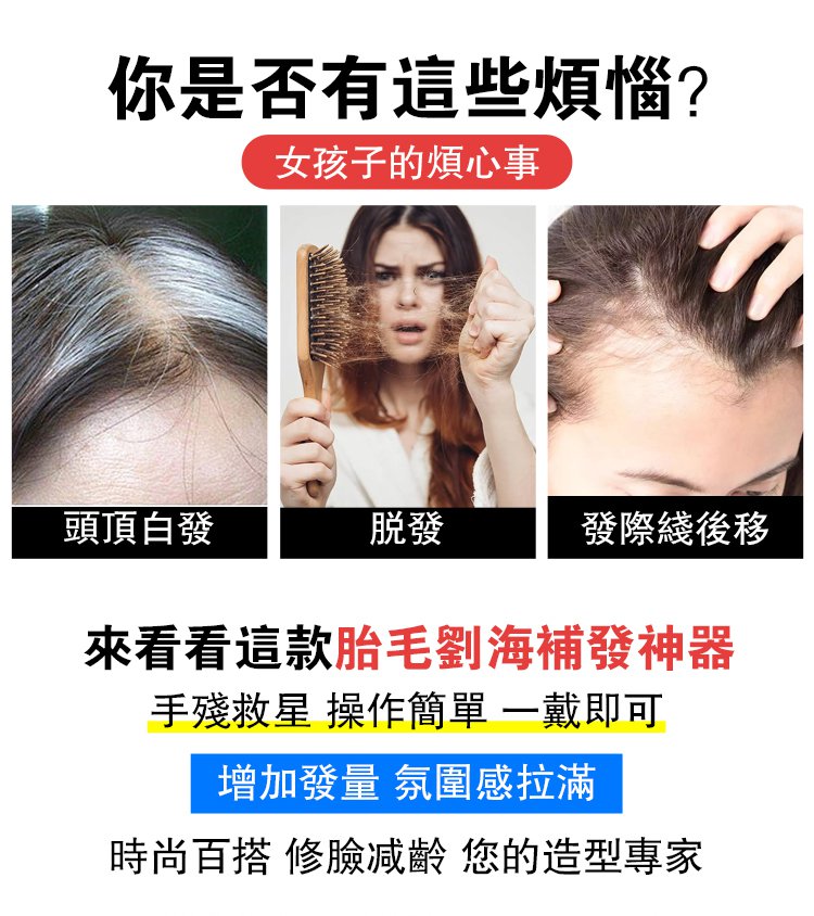 12分鐘前【巨隱形】胎毛劉海隱形前額補發神器 - 3入組1220