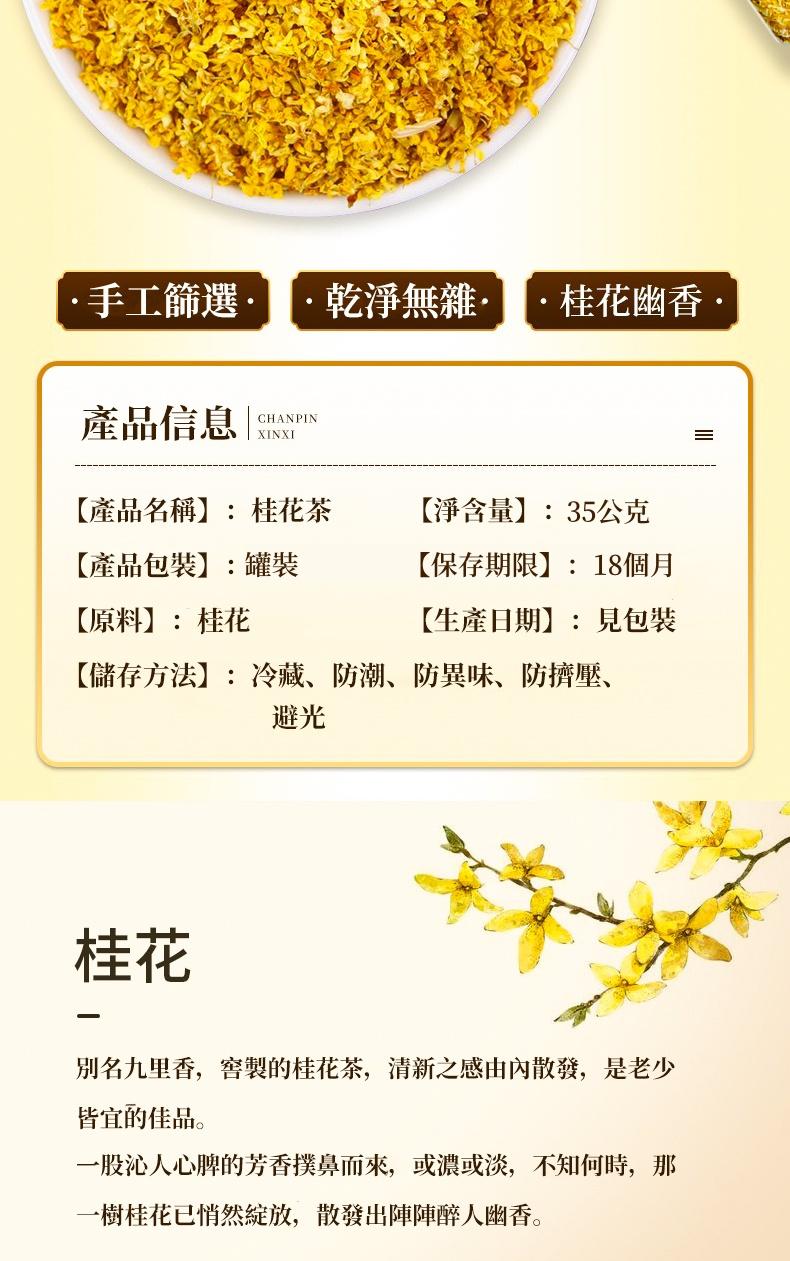 25分鐘前【限時特惠 買2送1】台灣製作,無農藥,無添加劑,無熏硫,自然農法種植,美容養顏,緩解腸胃不適,消除口臭,綠色天然的養生佳品。一罐可沖泡50次。【下單贈送花茶過濾球】 - 【買3送2,均價319/瓶】五瓶桂花乾-NT$ 1599
