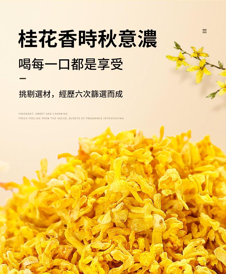 4分鐘前【限時特惠 買2送1】台灣製作,無農藥,無添加劑,無熏硫,自然農法種植,美容養顏,緩解腸胃不適,消除口臭,綠色天然的養生佳品。一罐可沖泡50次。【下單贈送花茶過濾球】 - 【買4送3,均價257/瓶】七瓶桂花乾-NT$ 1799