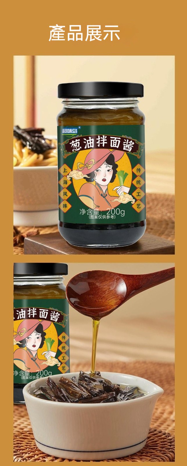 15分鐘前醇厚麵醬,完美搭配麵食,展現獨特風味 ,五分鐘就能吃上的蔥油拌面 ,無需繁瑣步驟 ,開瓶即食 油潤蔥香即刻享用 ,增鮮提香 ,秒變大廚 ,飯或者面都能一勺搞定 - 【家庭囤貨裝】6入組-NT$1380
