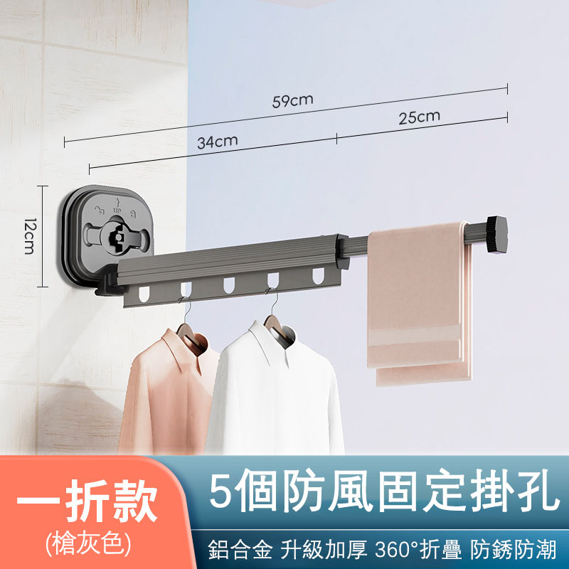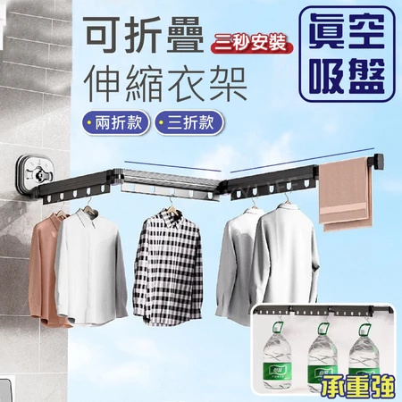 4分鐘前【不佔空間 晾衣神器】吸盤壁掛式鋁合金折疊晾衣架「免打孔 即吸即用」 - M【中長款 - 三段兩折】鋁合金壁掛式伸縮晾衣架 = NT$1299