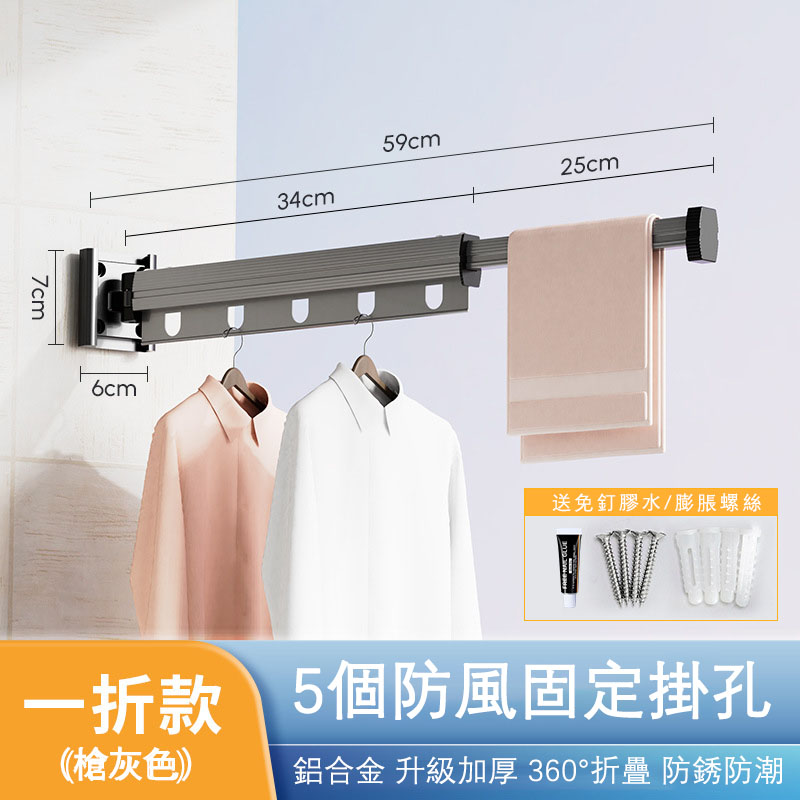 12分鐘前【不佔空間 晾衣神器】吸盤壁掛式鋁合金折疊晾衣架「免打孔 即吸即用」 - M【中長款 - 三段兩折】鋁合金壁掛式伸縮晾衣架 = NT$1299
