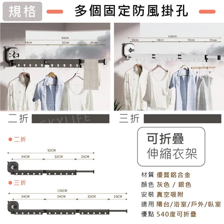 12分鐘前【不佔空間 晾衣神器】吸盤壁掛式鋁合金折疊晾衣架「免打孔 即吸即用」 - (熱賣)L【加長款 - 四段三折】鋁合金壁掛式伸縮晾衣架 = NT$1450