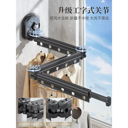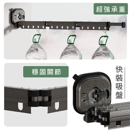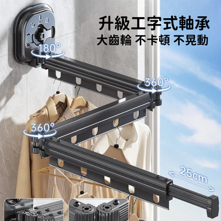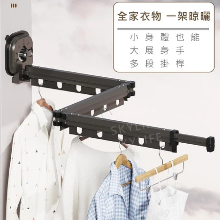 5分鐘前【不佔空間 晾衣神器】吸盤壁掛式鋁合金折疊晾衣架「免打孔 即吸即用」 - (熱賣)L【加長款 - 四段三折】鋁合金壁掛式伸縮晾衣架 = NT$1450