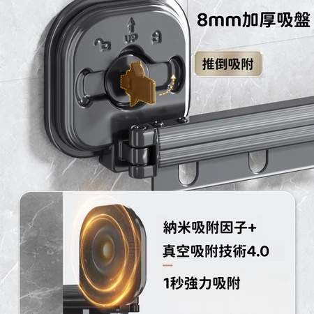 2分鐘前【不佔空間 晾衣神器】吸盤壁掛式鋁合金折疊晾衣架「免打孔 即吸即用」 - (熱賣)L【加長款 - 四段三折】鋁合金壁掛式伸縮晾衣架 = NT$1450