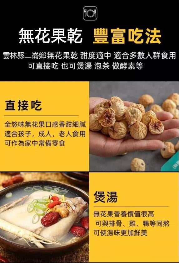 半小時前【台灣雲林頂級無花果乾】天然有機果王! 美容養顏、改善便秘、清熱生津、强健體質 抗癌抗瘤、降脂降壓、預防三高等多種功效 - 【歷史最低價】雲林有機無花果 十入組-NT$1598