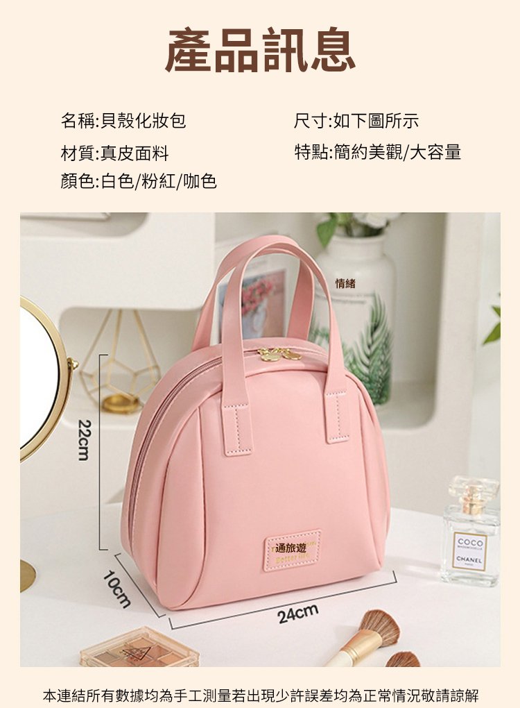 7分鐘前 大容量貝殼牛皮手提化妝包 全台免運 貨到付款 無理由退貨 - 【新上市體驗】一入組僅需 NT$899