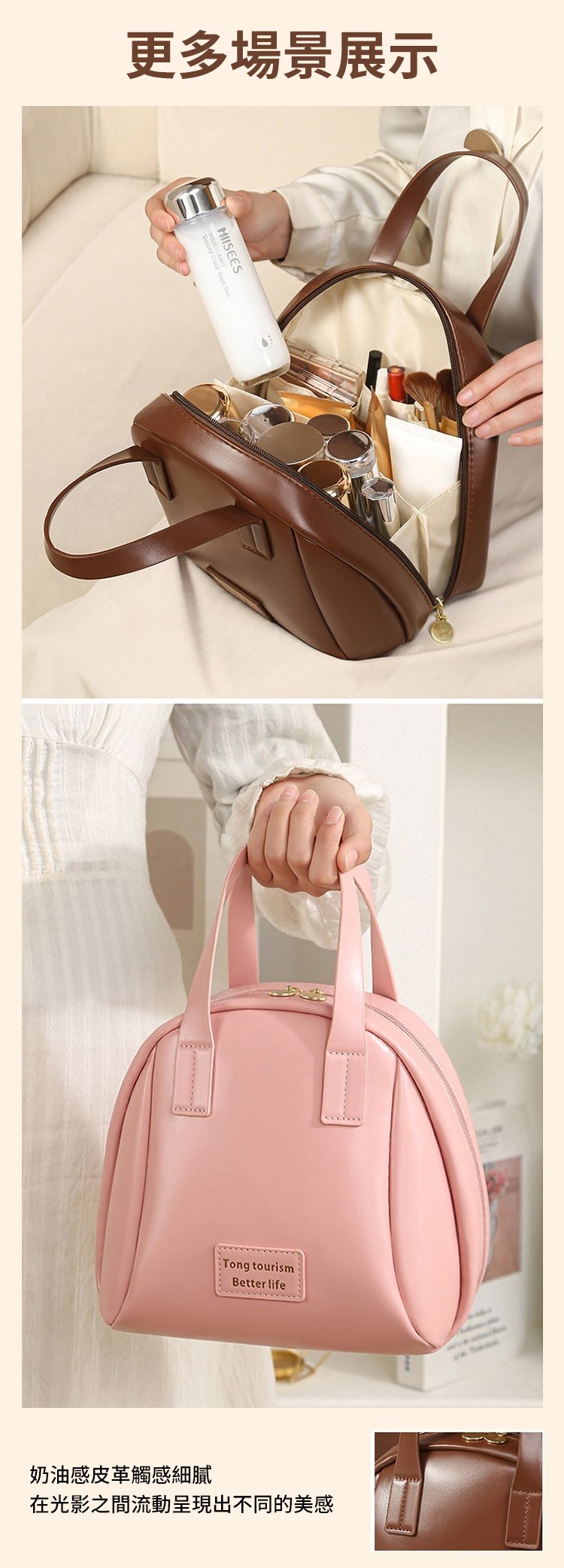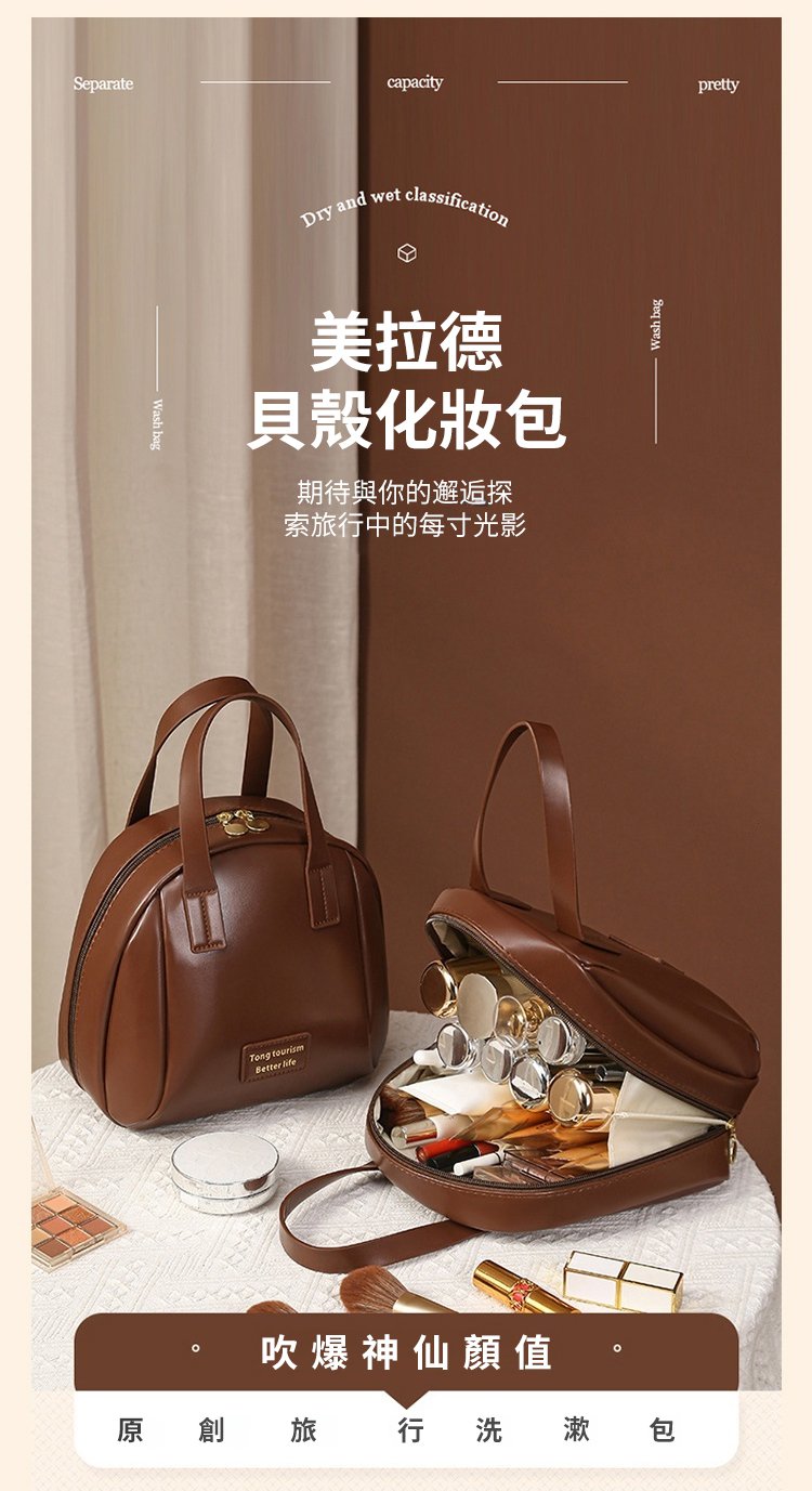 大容量貝殼牛皮手提化妝包,容量超大,盡納美妝好物。材質選用優質牛皮,堅韌耐用。獨特貝殼設計,時尚新穎。手提款式,便捷實用。既滿足功能性需求,又彰顯時尚品味,是你化妝包的理想之選。