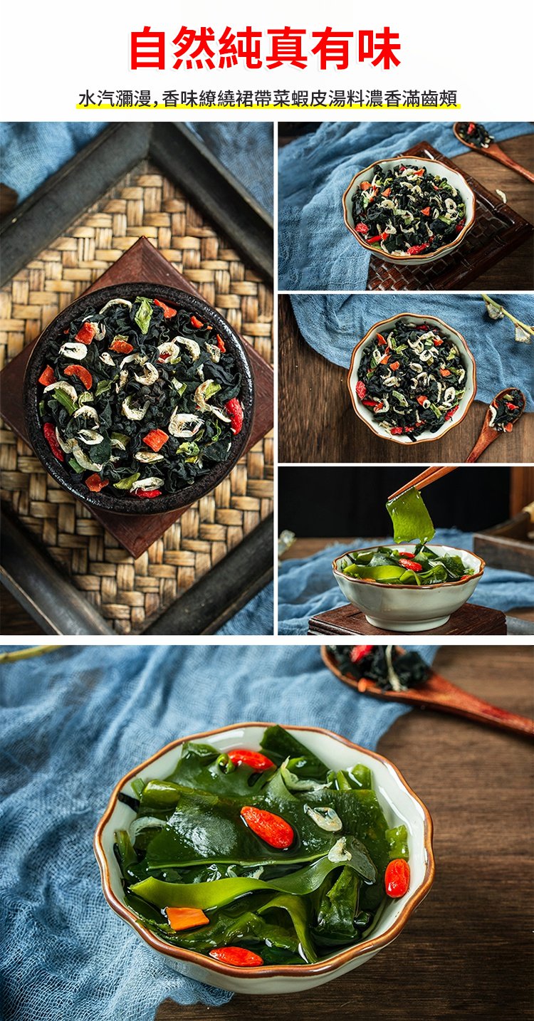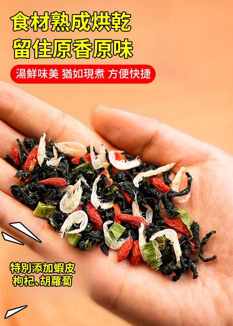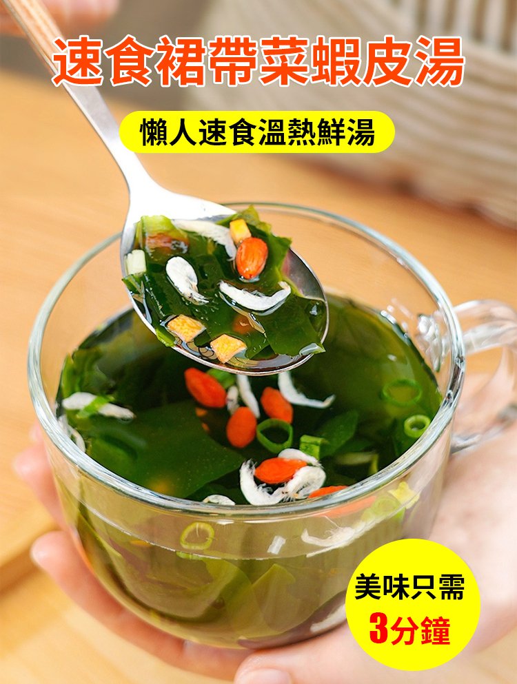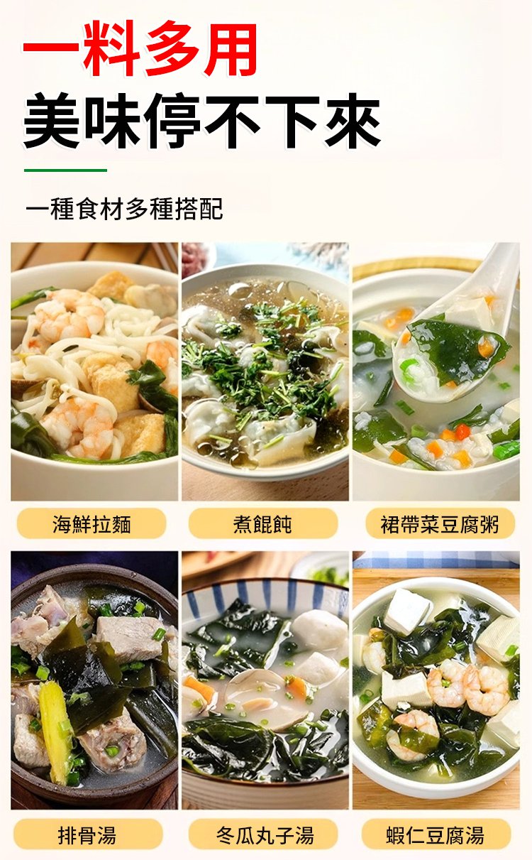 20分鐘前裙帶菜,含鈣量是牛奶的十倍, 營養價值極高,是微量元素和礦物質的天然寶庫, 大廚精心調配,鮮香味美!餛飩湯料包, 品質嚴選,10遍淘洗,無沙更純淨! - 【超夯活動】50入組$799