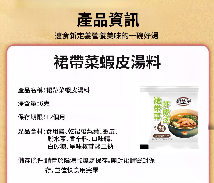 2分鐘前裙帶菜,含鈣量是牛奶的十倍, 營養價值極高,是微量元素和礦物質的天然寶庫, 大廚精心調配,鮮香味美!餛飩湯料包, 品質嚴選,10遍淘洗,無沙更純淨! - 【超夯活動】50入組$799