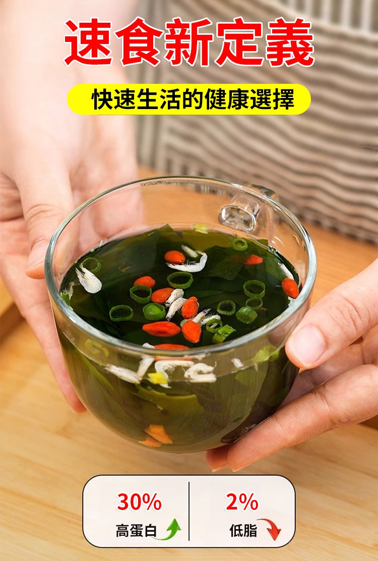 25分鐘前裙帶菜,含鈣量是牛奶的十倍, 營養價值極高,是微量元素和礦物質的天然寶庫, 大廚精心調配,鮮香味美!餛飩湯料包, 品質嚴選,10遍淘洗,無沙更純淨! - 【超夯活動】50入組$799