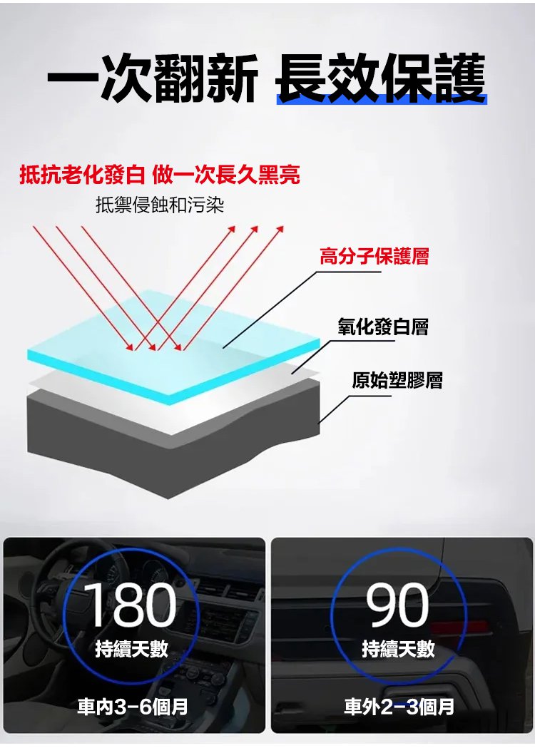 25分鐘前【汽車塑膠翻新鍍膜】一塗一擦,快速翻新汽車塑料橡膠內飾皮革老化,黑科技翻新劑讓你的愛車煥然一新!,升級款鍍晶修復翻新劑,一瓶鍍膜神器,舊車變成新車 - 【98%客戶選擇 狂殺特賣】六入組NT$1099