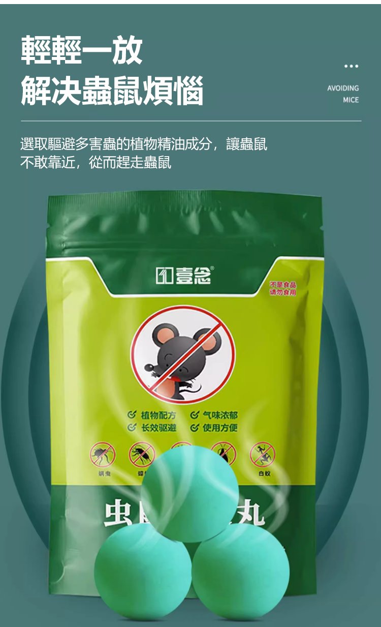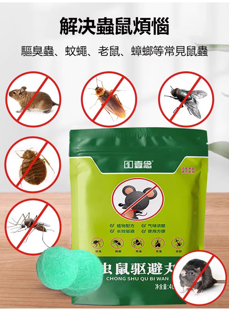 2分鐘前【驅蟲避鼠丸】消滅老鼠,驅蟲蚊蟲,讓你全年遠離老鼠和蚊蟲。對人和寵物無害,可放心使用! - 驅趕鼠蟲,安全一整年【狂殺特賣】十袋入組NT$1298