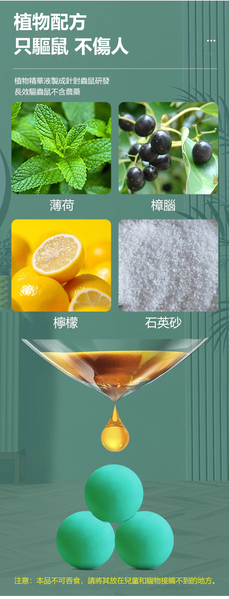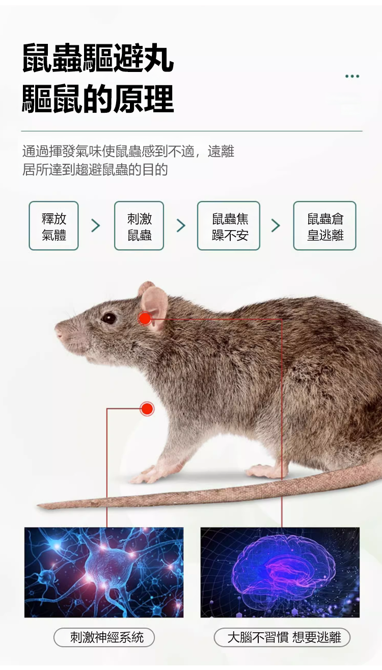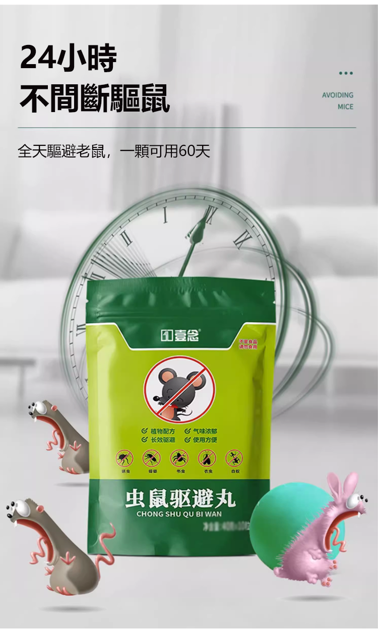 半小時前【驅蟲避鼠丸】消滅老鼠,驅蟲蚊蟲,讓你全年遠離老鼠和蚊蟲。對人和寵物無害,可放心使用! - 老鼠跑光光 【超值特惠】五袋入組NT$998