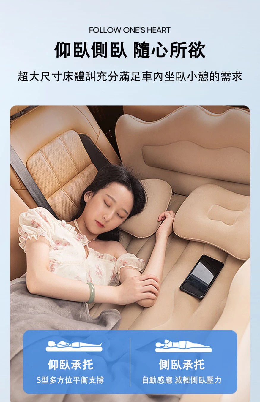 汽車充氣床墊【親膚植絨+全配套裝】雙人充氣床墊 露營充氣床墊
