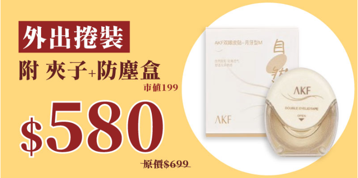 12分鐘前日韓熱銷TOP1【AKF電眼貼】#快速黏貼 #隱形無痕 #防水又防汗/秒變迷人電眼完美隱形貼合/千位女孩票選/命定雙眼皮貼就是它 - 【外出捲裝】附 夾子 & 防塵盒一入組NT$580