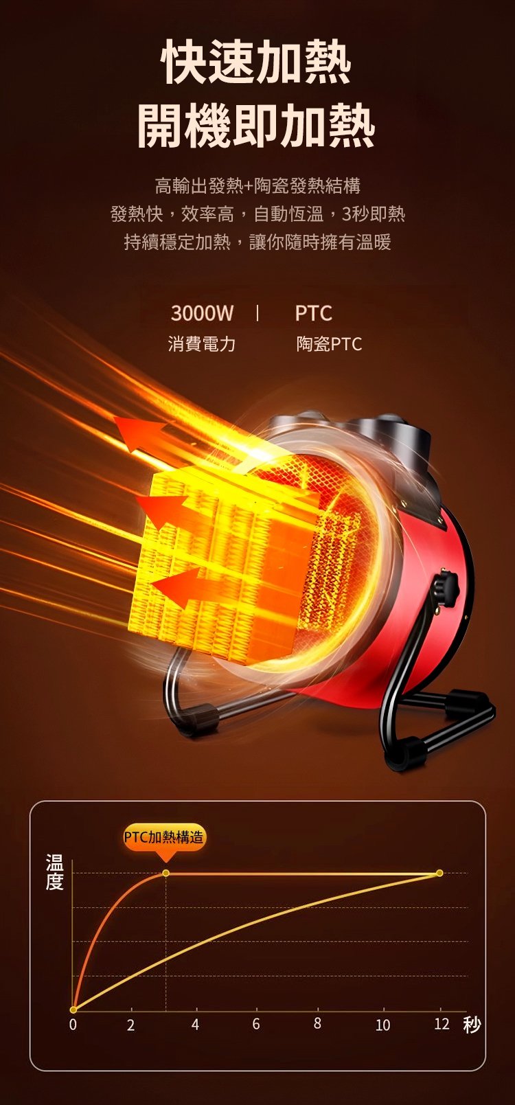 半小時前【一度電暖200㎡】360°循環對流陶瓷PTC速熱暖風機 - 【限時促銷】第二件僅需$800